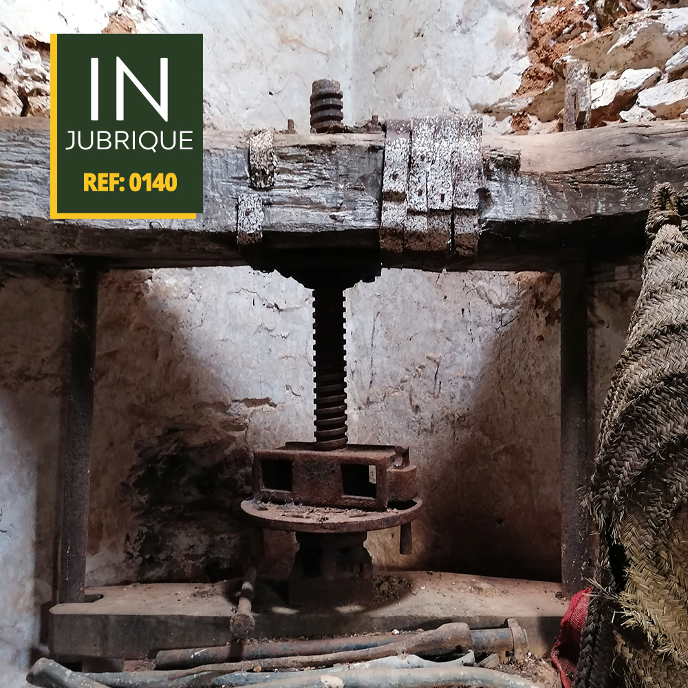 La finca posee una construcción que corresponde a un antiguo Molino de Aceite tradicional con una superficie total de aproximadamente 200 m/2 distribuida en 2 plantas, por su estado necesita restauración integral de cubiertas, forjados y revestimientos etc… pero conserva en la planta inferior, la prensa, la piedra de moler, utensilios, herrajes, incluso un antiguo horno para hacer pan y depósito de agua de obra.