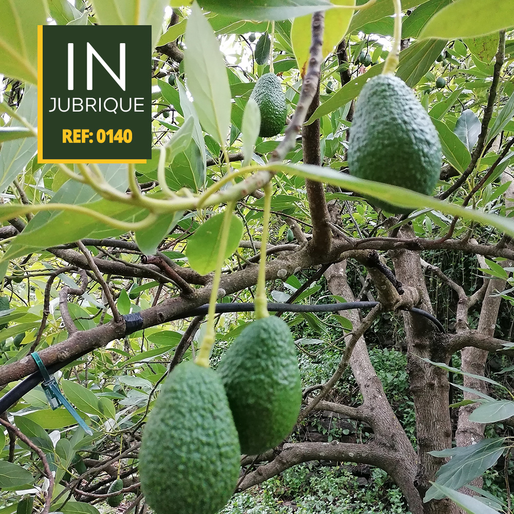 La finca tiene una zona de regadío en la parte Sur con una plantación de aproximadamente 70 aguacates y unos 50 naranjos, alternando en los alrededores de la casa Molino con una zona de secano dedicada a aceitunas de mesa, de aceite, ciruelos, almendros e higueras.